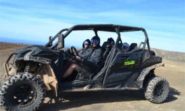 ¡Viva una emocionante aventura familiar en buggy para cuatro! Conduzca por los alrededores de las Montañas del Fuego del Parque Nacional de Timanfaya, pasando por pintorescos viñedos. Explore el interior del cráter del volcán Cuervo y descubra los impresionantes cañones de Lanzarote. Apta para todas las edades, esta excursión de medio día promete un viaje inolvidable para toda la familia.
